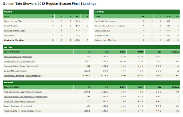 Another fickle creature that's crept upon me in the beginning of the playoffs, is an uncanny ability to sit an entire B team that subsequently outscores my A team by 40 points. This has happened twice in the first two playoff weeks.